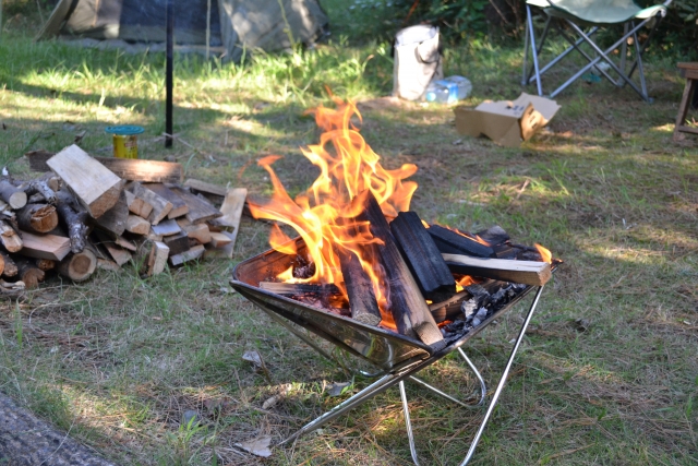 木材と焚き火台があれば、簡単に焚き火ができます。