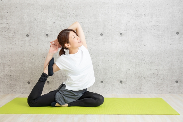 ヨガの鳩のポーズは、肩甲骨や股関節を大きく動かすポーズです。